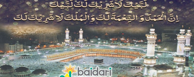 لَبَّیْک۔ لَبَّیْک لَا شَرِیْکَ لَکَ لَبَّیْک اِنَّ الْحَمْدَ والنِّعْمَۃَ